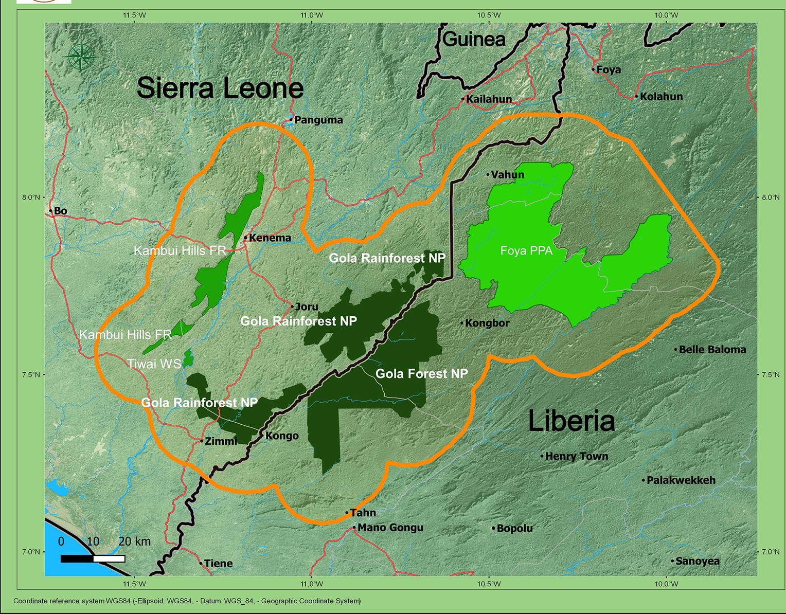Spanning approximately 104,628 hectares, Foya Proposed Protected Area (FPPA) stretches across parts of Lofa and Gbarpolu Counties, forming a critical link in the Greater Gola Landscape, one of West Africa’s most important biodiversity strongholds.